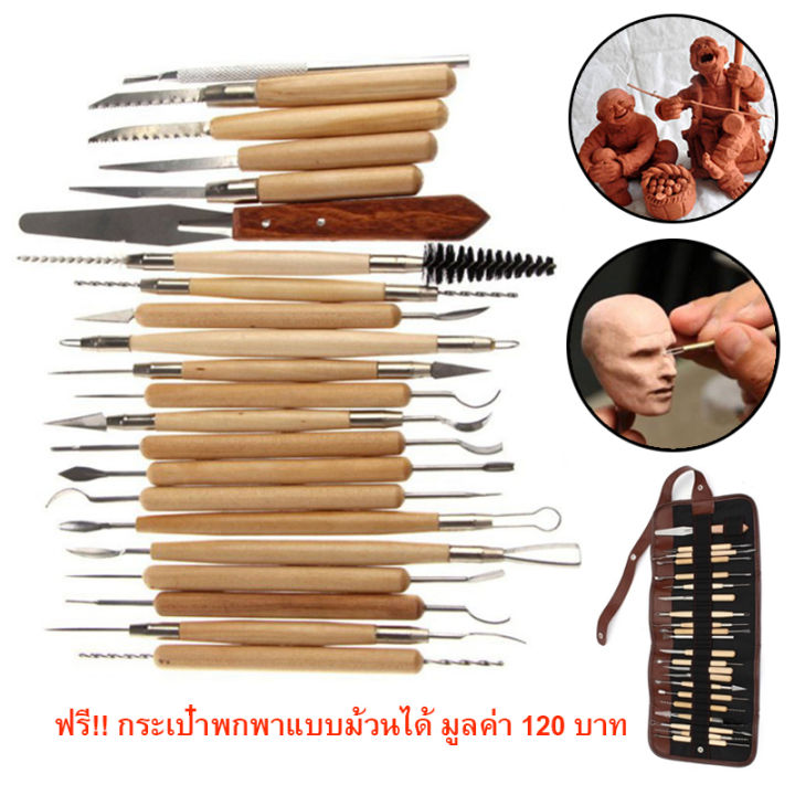 ชุดเครื่องมืองานปั้น 22 ชิ้น ด้ามจับไม้ ใช้ปั้นดินเหนียว งานเครื่องปั้นดินเผา ตกแต่งรายละเอียด สร้างโมเดล ดินน้ำมัน แกะโฟม แกะสลักไม้