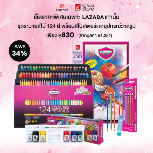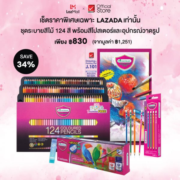 Master Art ชุดระบายสี สีไม้ 124 สี รุ่นใหม่ พร้อมสีสีโปสเตอร์และอุปกรณ์วาดรูป