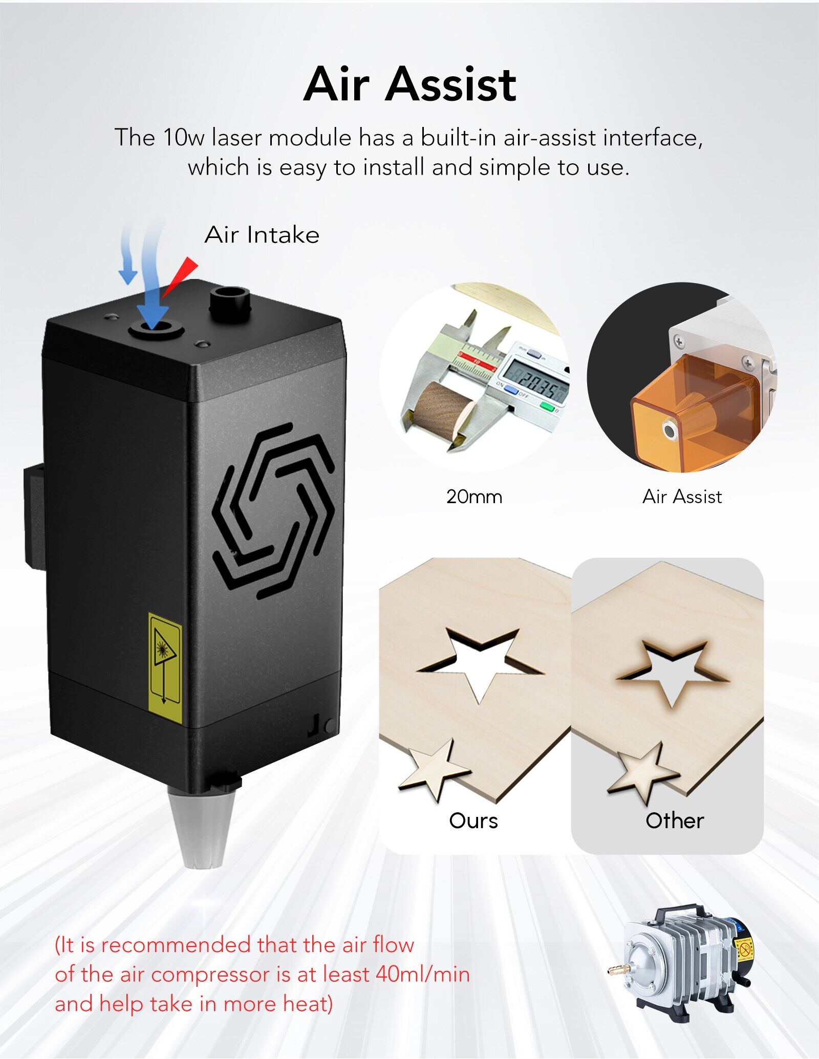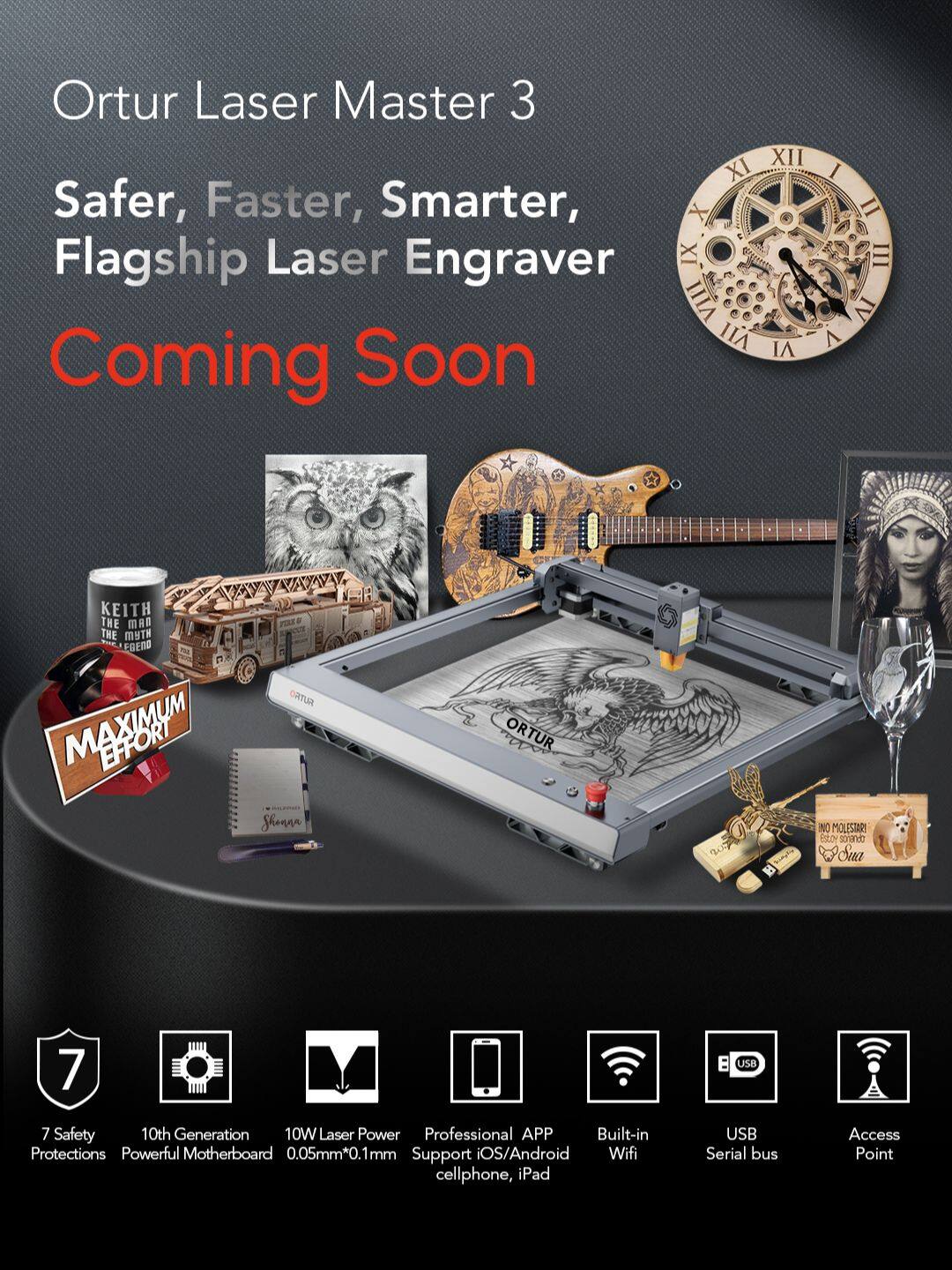 ORTUR Laser Master 3 กำลังขับ 10W เครื่องแกะสลักเลเซอร์ แอพเครื่องตัดเลเซอร์ การควบคุมแบบออฟไลน์ เครื่องแกะสลักเลเซอร์กำลังสูงสำหรับงานไม้และโลหะ (พร้อมหัวฉีดช่วยลม)