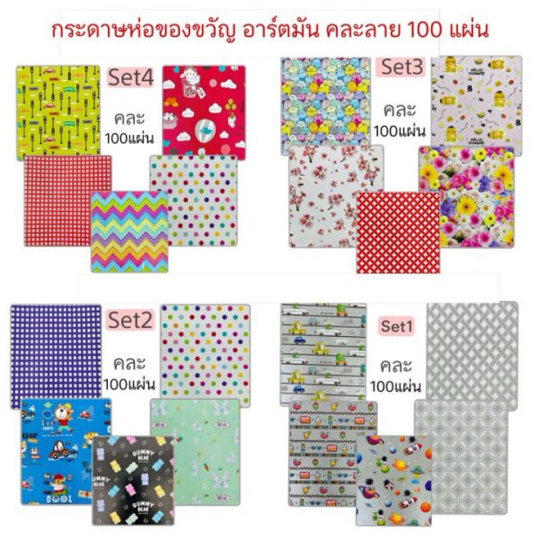 (WY) (100แผ่น) ศิลปะห่อของขวัญกระดาษมีการออกแบบให้…